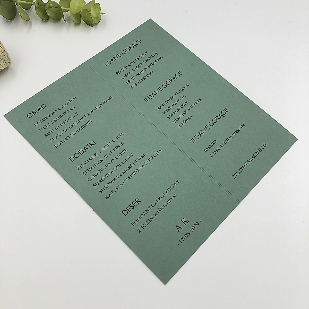 Menu wykonane z najwyższej jakości sztywnego kartonu pastelowego w bardzo modnym