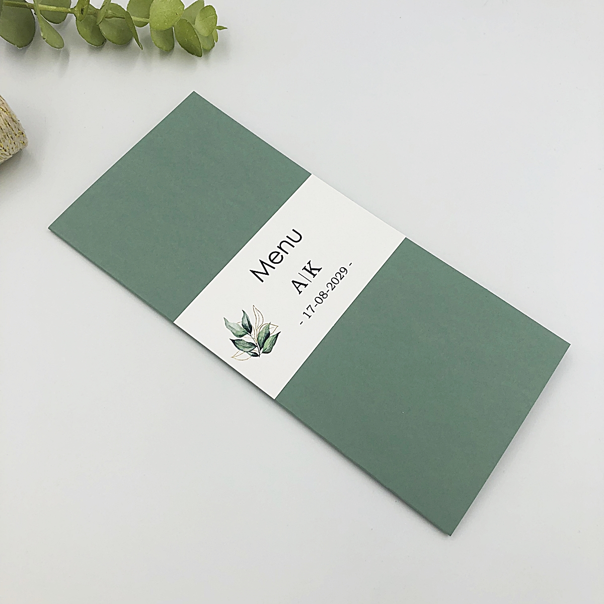 Całość ozdabia botaniczna grafika listów w kolorze zielonym i złotym.