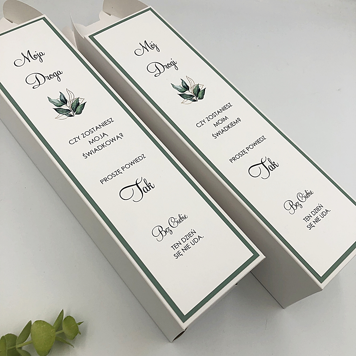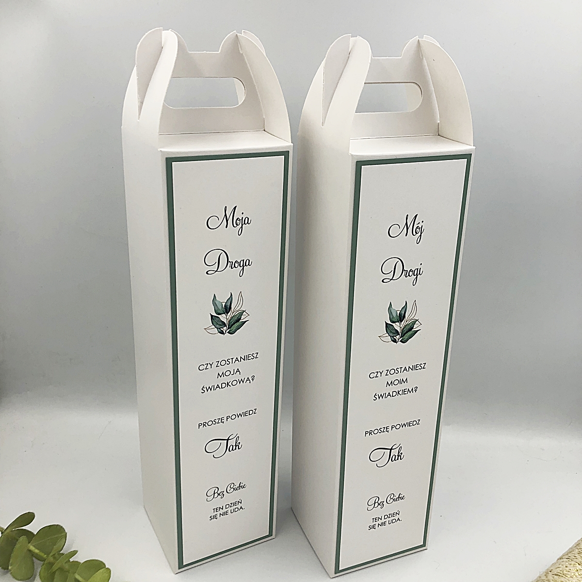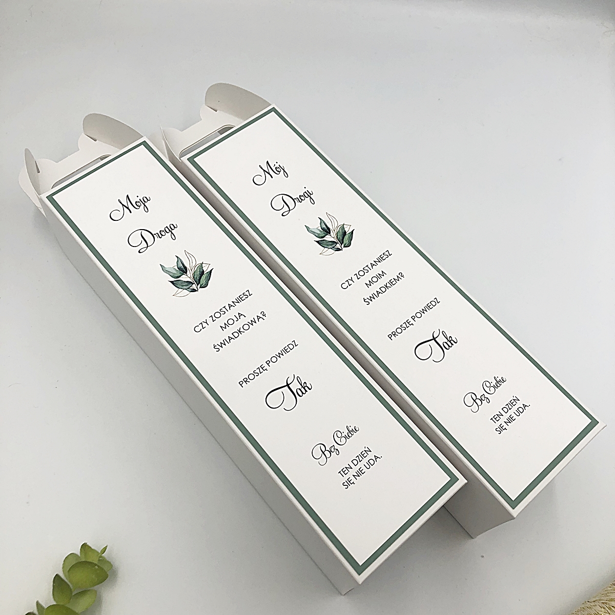 Strona główna Ślub i wesele Zaproszenia ślubne Zaproszenia dla rodziców i świadków Zaproszenia i prośby o świadkowanie dla świadków Prośba o świadkowanie pudełko na alkohol matcha tea, zielona herbata, listki