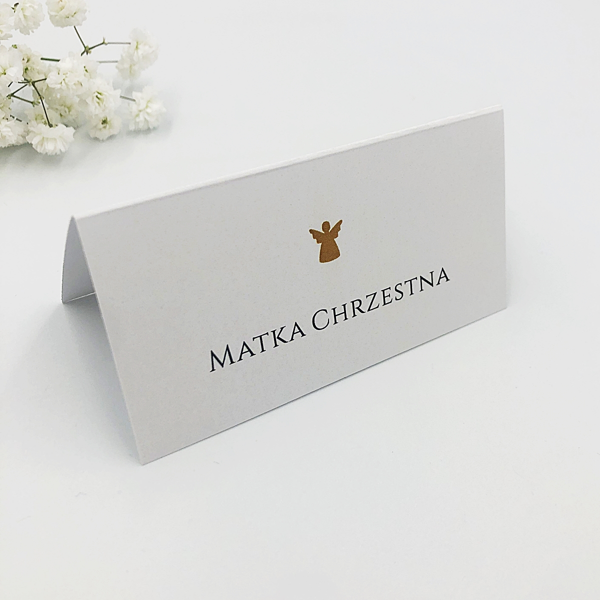 Całość ozdabia śliczny motyw aniołka w złotym kolorze.