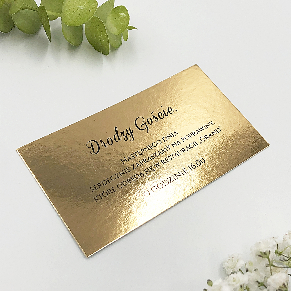 Wasz wielki dzień nie kończy się na jednym wieczorze?– Dodaj elegancki akcent do swoich zaproszeń ślubnych, informując gości o planowanych poprawinach dopełniając zaproszenie elegancką wkładką z informacją o dalszym świętowaniu. Nasze lustrzane wkładki do zaproszeń ślubnych z informacją o poprawinach to idealne rozwiązanie, które ułatwi organizację najważniejszego dnia w Twoim życiu. Takie wkładki to nie tylko praktyczny element, który pozwoli w wyjątkowy sposób przekazać szczegóły dotyczące drugiego dnia wesela, ale także piękne dopełnienie Twoich zaproszeń.