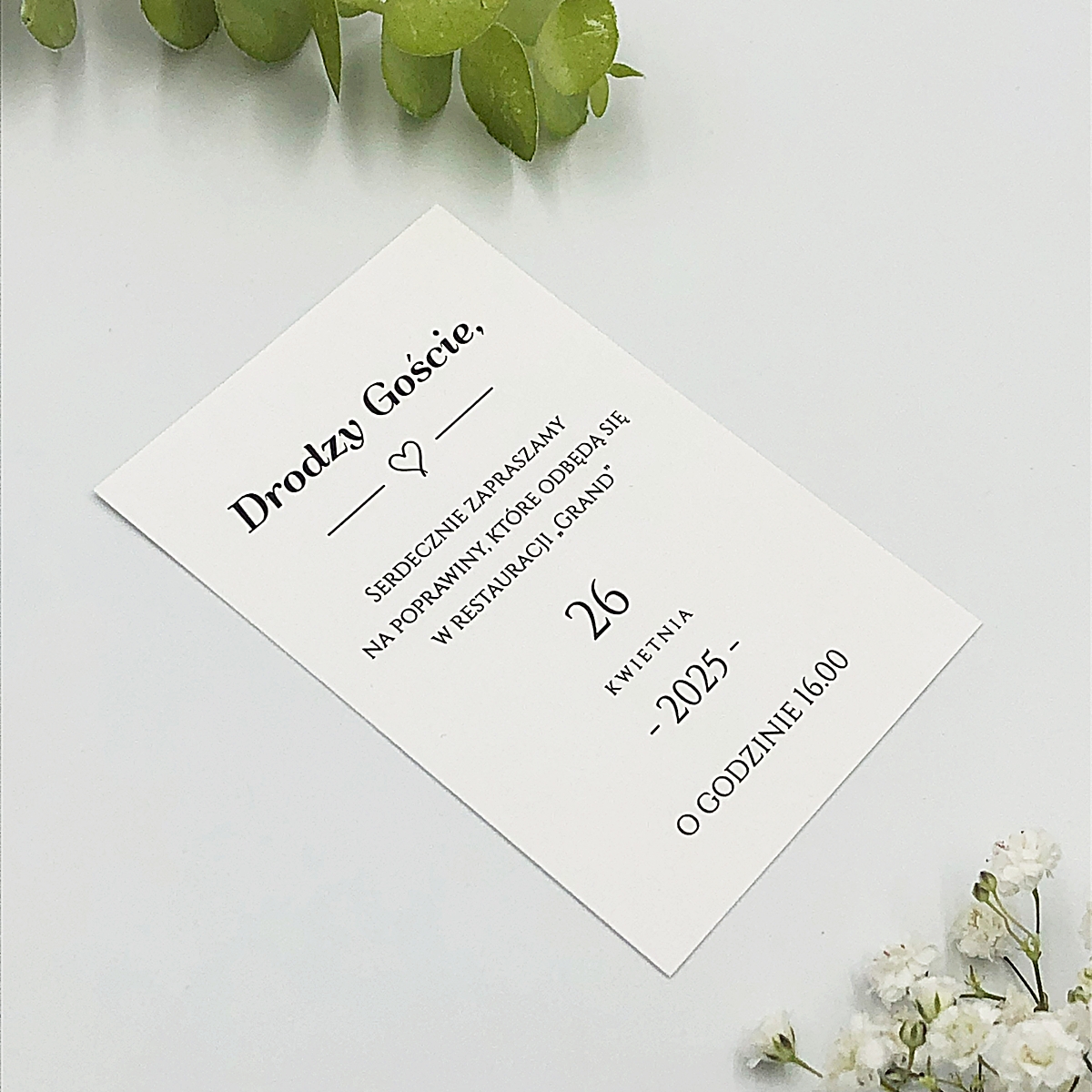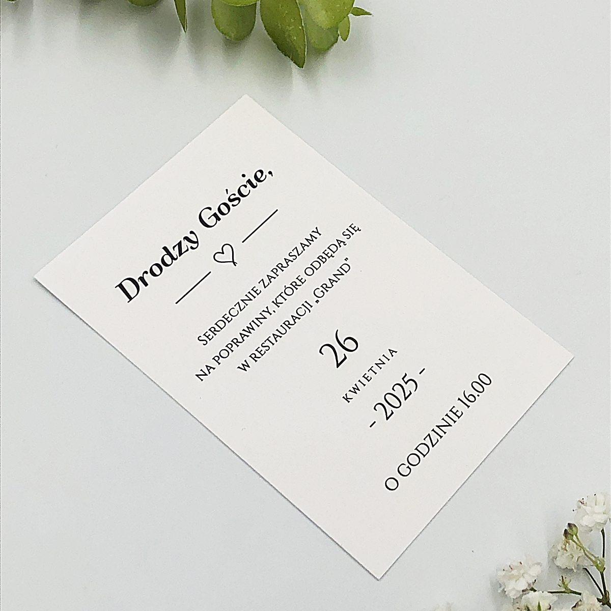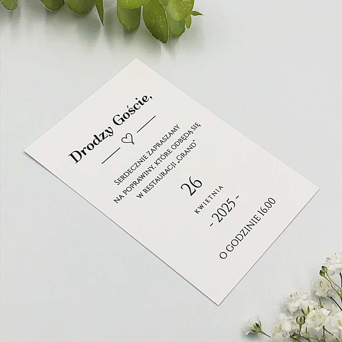 Wkładki do zaproszeń ślubnych z poprawinami, ozdobione minimalistyczny serduszkiem