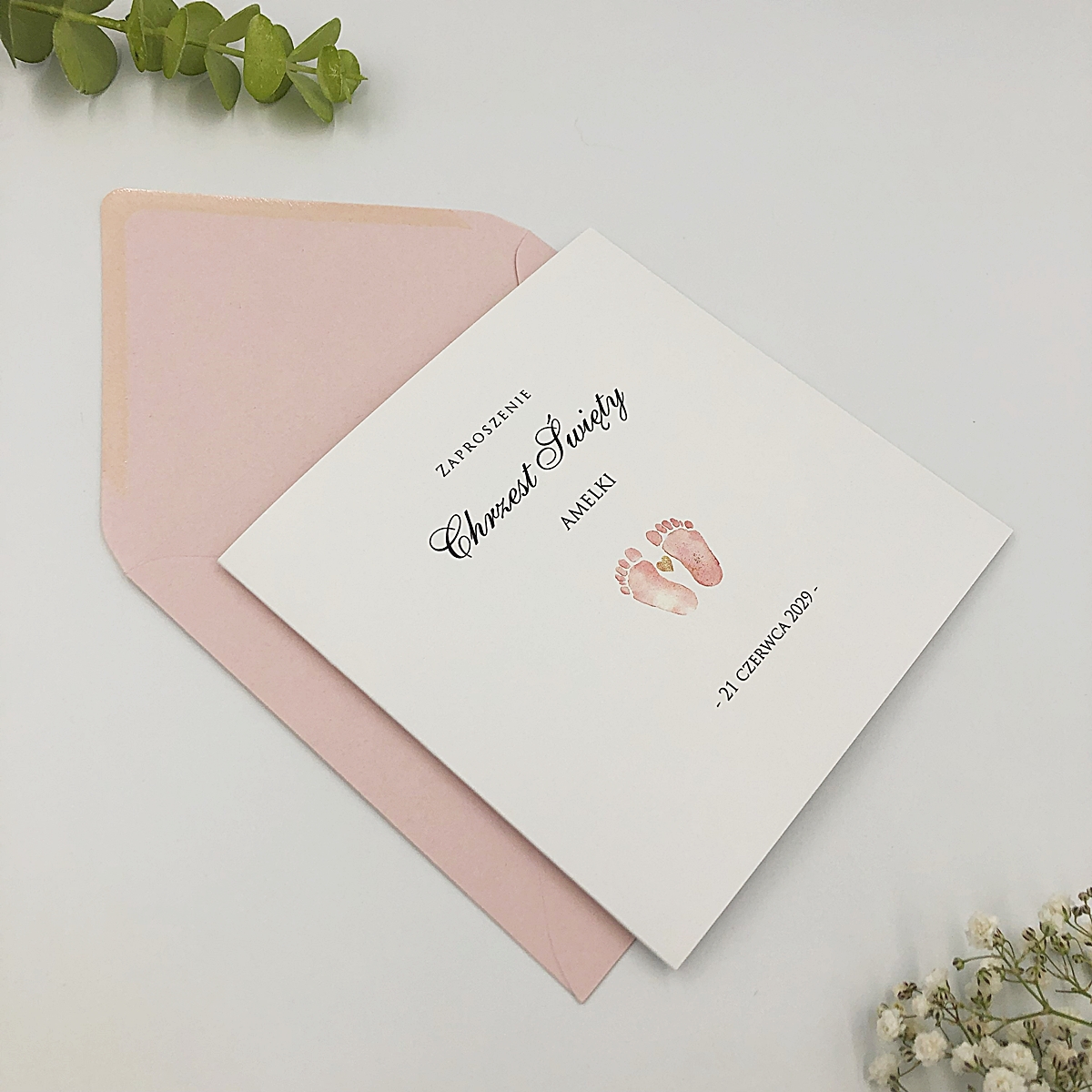 Zaproszenia na Chrzest Święty dla dziewczynki stópki
