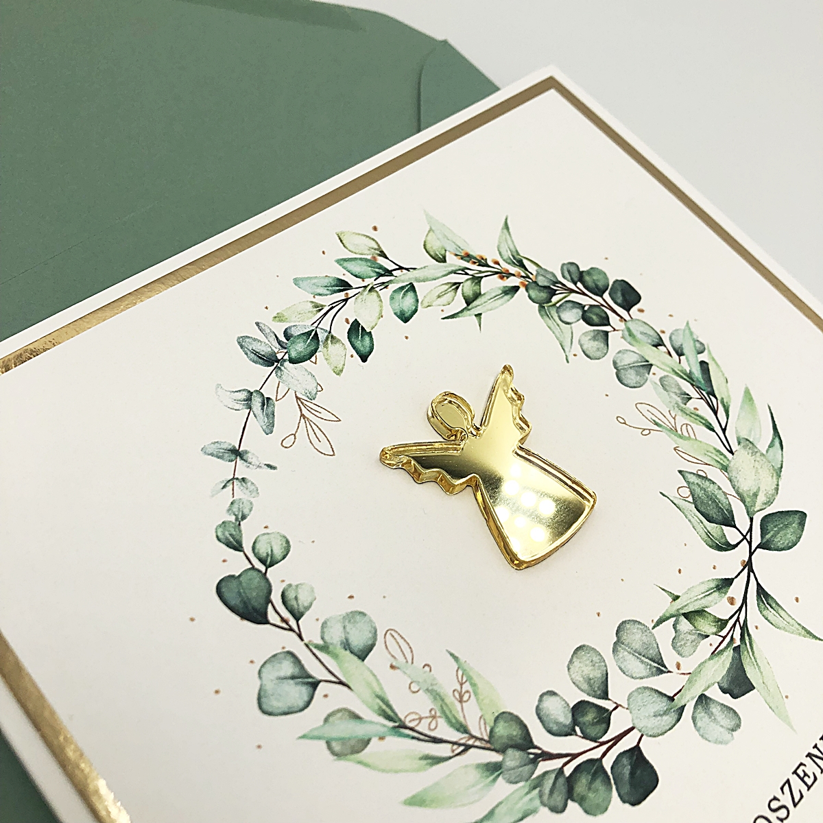 Zaproszenia na komunię świętą złoty lustrzany aniołek glamour