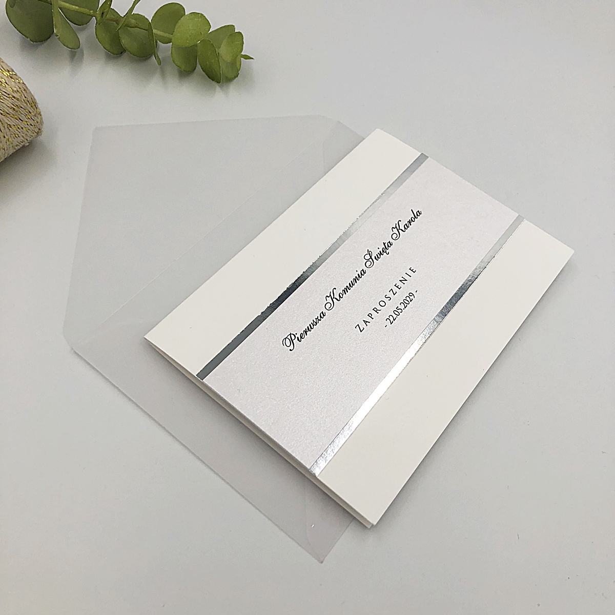 Strona główna Komunia Zaproszenia personalizowane na komunię Zaproszenia na komunię świętą, chrzest święty glamour mirror, srebrny pasek 01