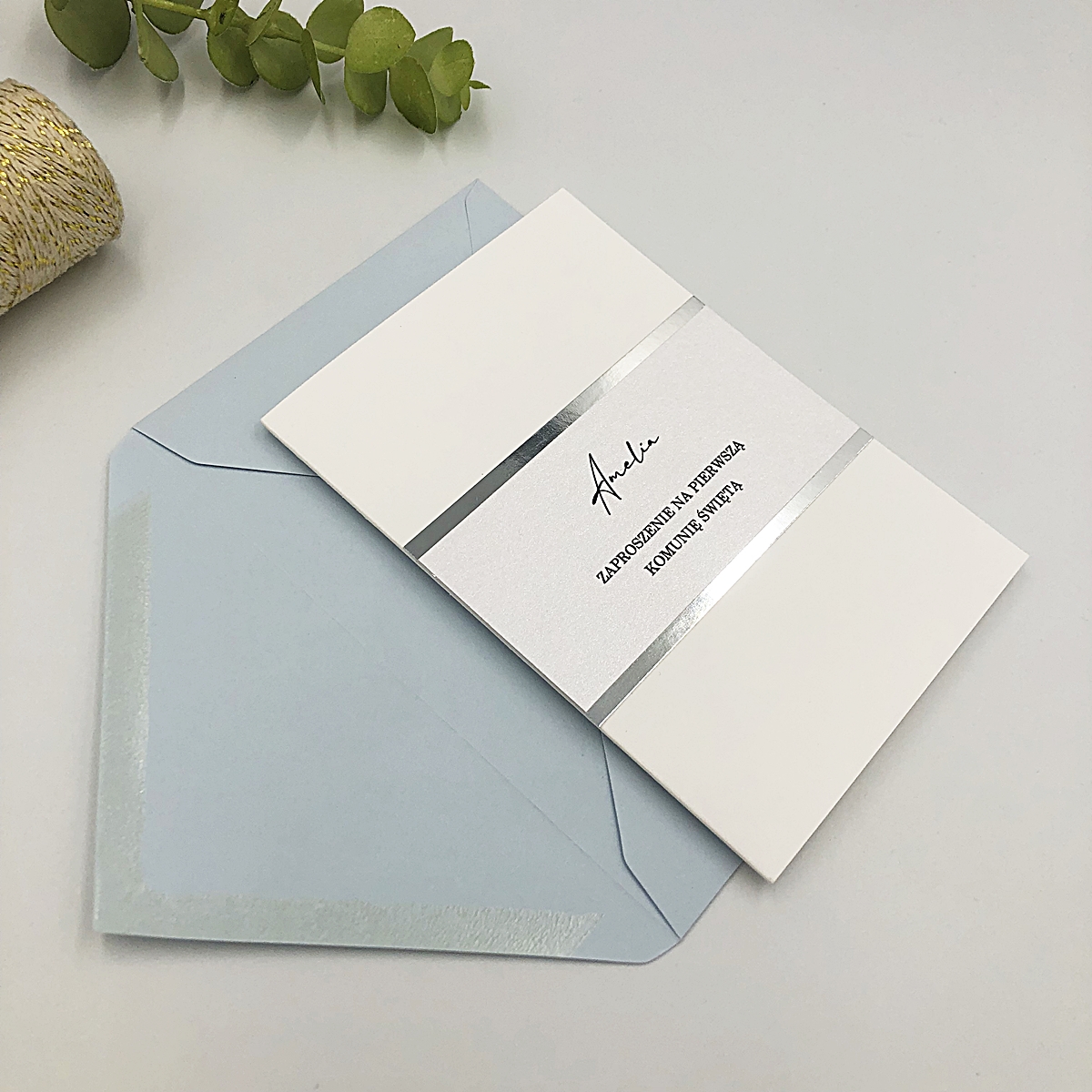 Zaproszenia na komunię świętą, chrzest święty glamour mirror, srebrny pasek 02