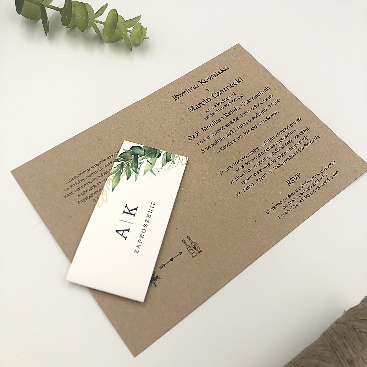 Zaproszenia zostały zaprojektowane w nowoczesnym stylu eko.
