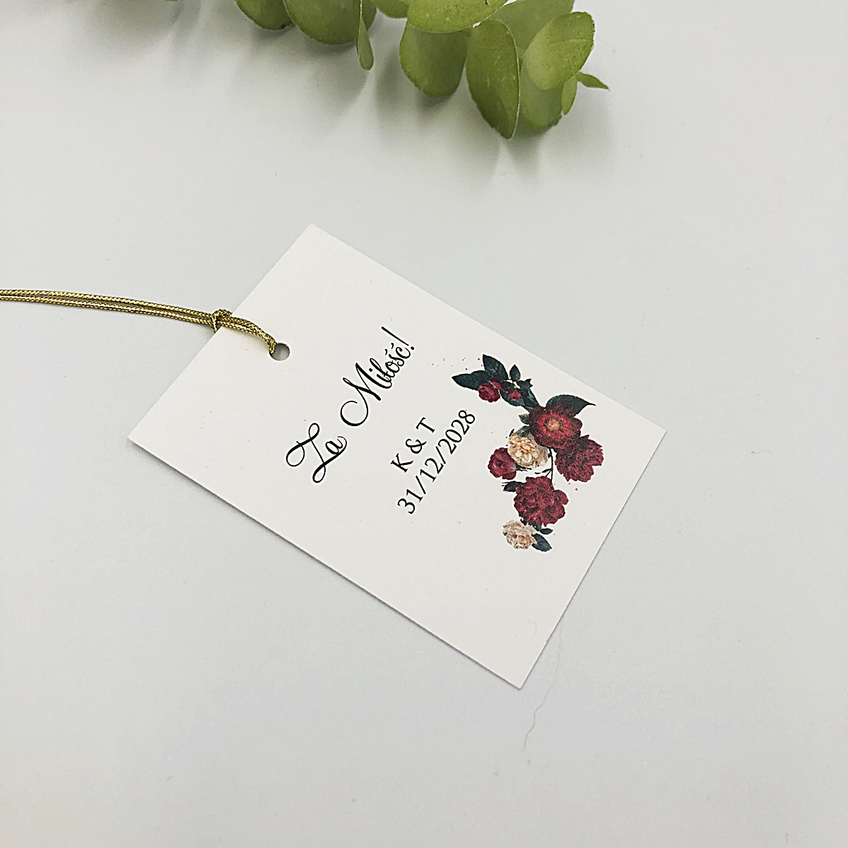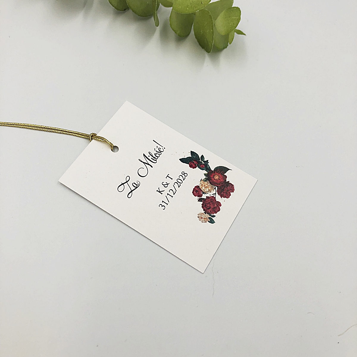 Strona główna Ślub i wesele Zawieszki na wódkę weselną Zawieszki na wódkę bordowe kwiaty, zielone listki